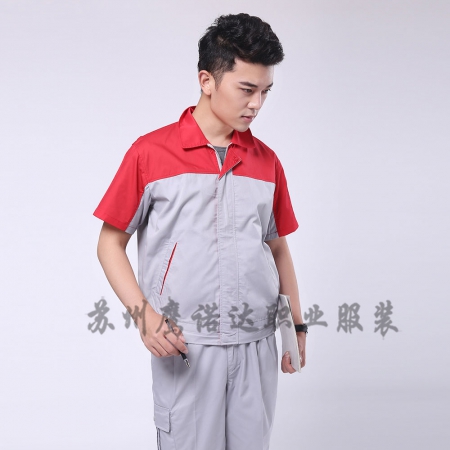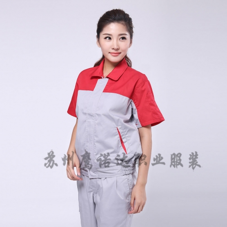 大红配浅灰夏季工衣套装AD078