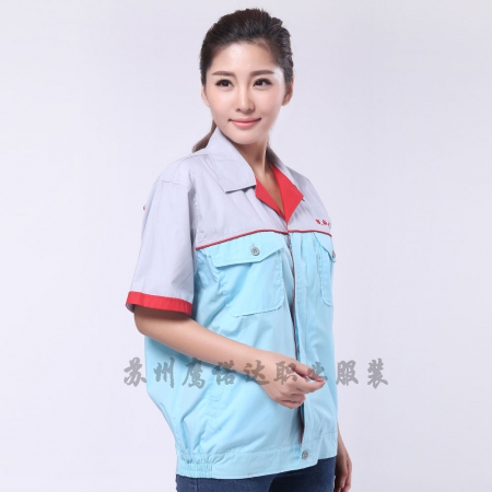 苏州鹰诺服装:艳蓝色短袖工作服AD12-4