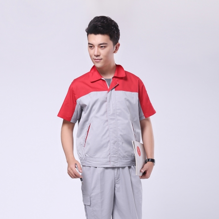 苏州鹰诺服装:大红配浅灰静电服AD078-JD