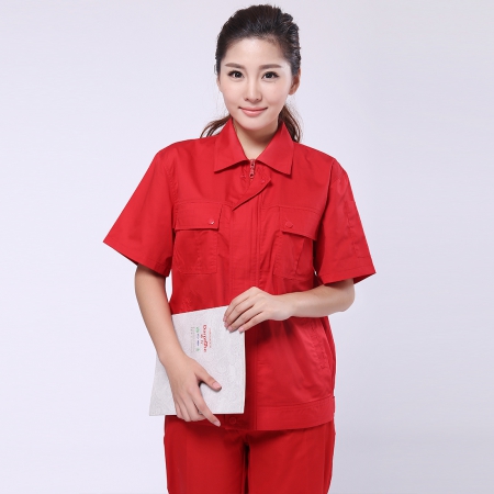 苏州鹰诺服装:大红涤棉防静电服AD083-JD