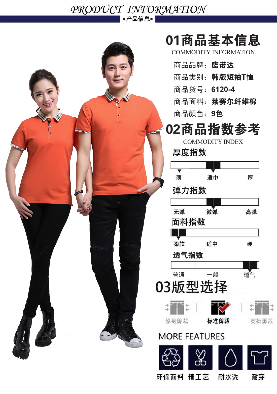 桔色提花领莱赛尔纤维棉Polo衫ID6120-4
