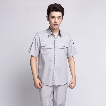 苏州鹰诺服装:浅灰拼绿色全棉工作服AC121-CQ