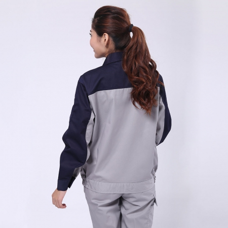 苏州鹰诺服装:米色拼藏青CVC纱卡春秋工衣AC112