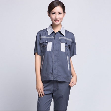 苏州鹰诺服装:浅灰拼中灰全棉秋季工作服AC06-1