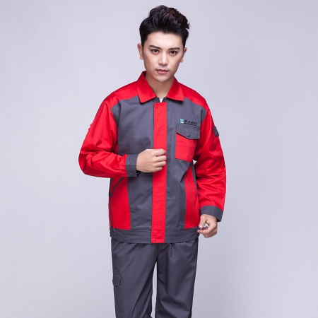 苏州鹰诺服装:深蓝配桔红春秋工作服AC069