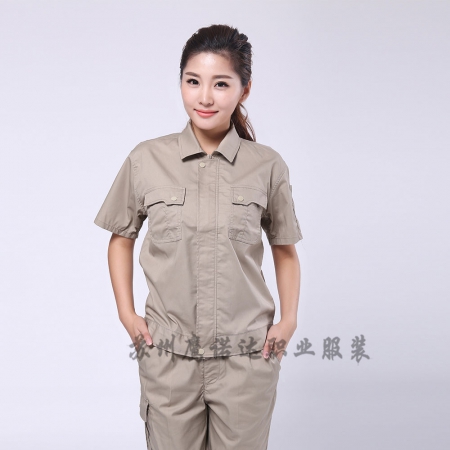 苏州鹰诺服装:驼色涤棉夏季工衣套装AD074