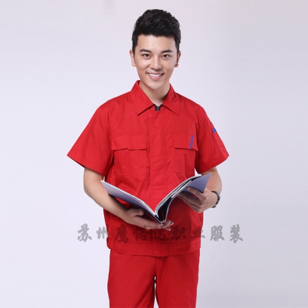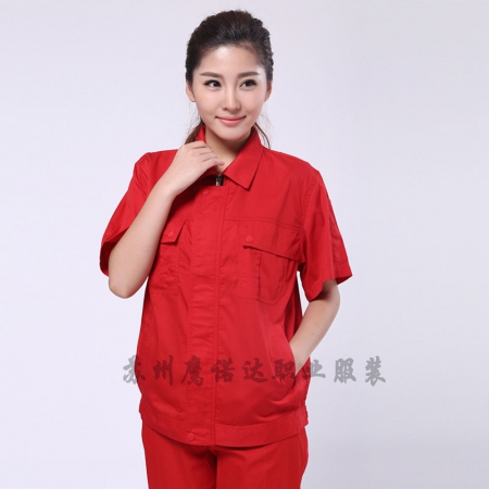 苏州鹰诺服装:大红夏季工装工作服AD083