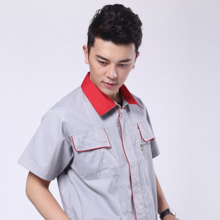 苏州鹰诺服装:浅灰拼绿色涤棉工作服AC121-CQ