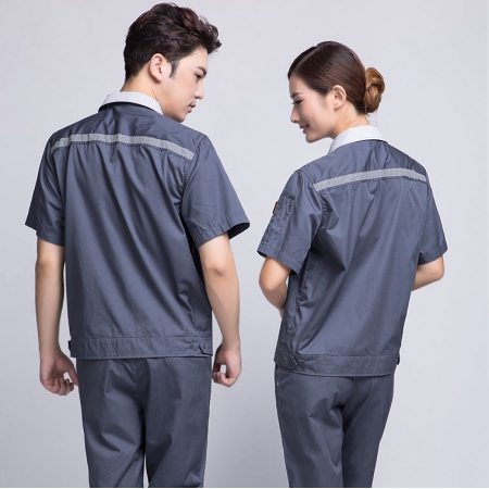 苏州鹰诺服装:清灰拼银灰全棉夏季工作服AD06-2