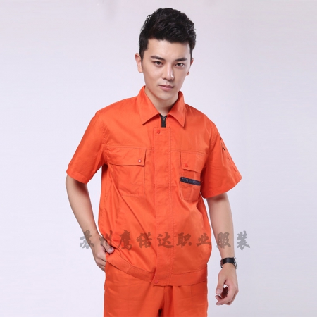 苏州鹰诺服装:橘黄拼黄色短袖工作服AD09-5