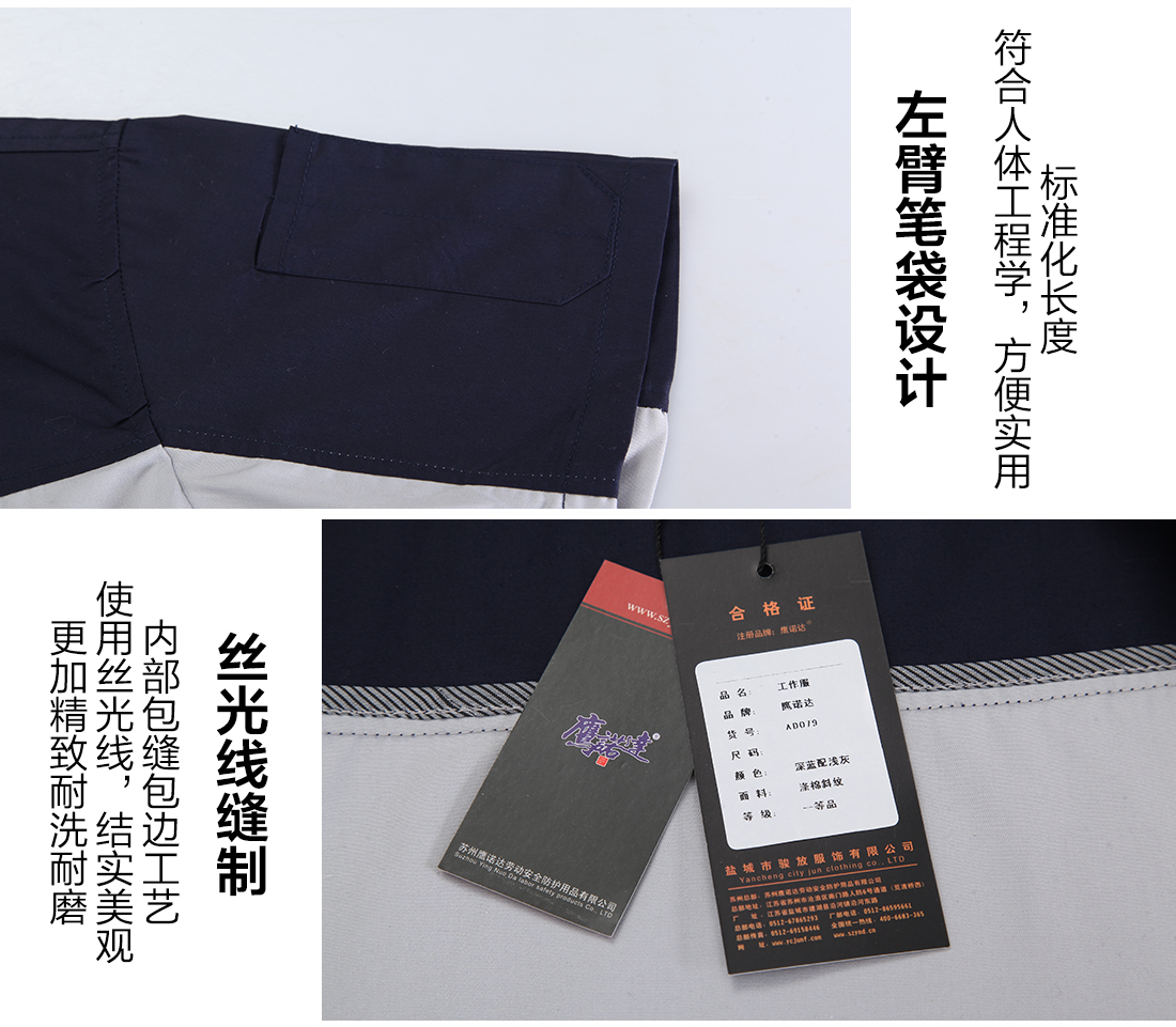 深蓝配浅灰夏天工作服套装AD079