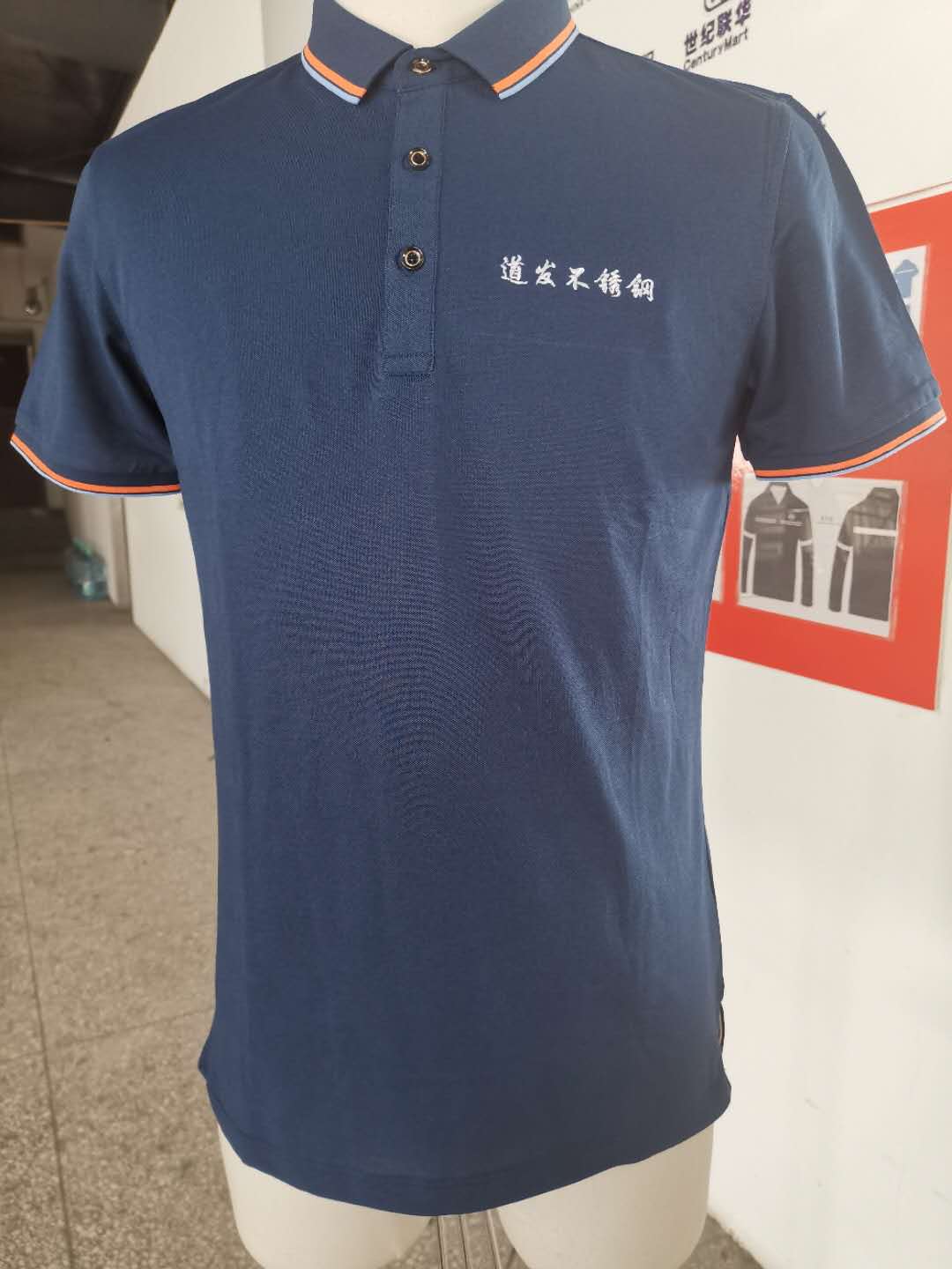 杭州的刘小姐是通过网络的平台搜索杭州工作服找到我们的,根据自己的行业特点,想要定制一批五金行业工作服。考虑到人员比较少,想要先做短袖的工作服上衣就可以了。刘小姐还是比较倾向于文化衫作为夏季工作服的款式。舒适透气,亲肤。经过销售人员的推荐,最终选择了鹰诺达的1636款的新款文化衫。颜色最终选择为枚红色还有深蓝色。在衣服的前后都印刷上公司的LOGO。一款专属自己的夏季工作服就诞生啦。下面就和小编一起来看看道发不锈钢的杭州工作服款式吧。