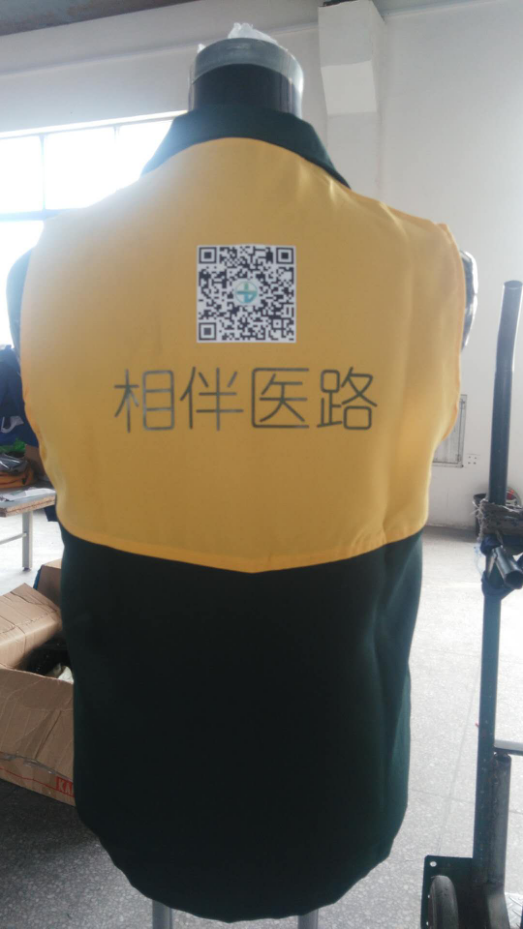 苏州鹰诺服装:马甲工作服定做的款式一般不会太复杂。广告马甲要凸显的是标准和广告语。因此马甲的款式不能喧宾夺主。以上是马甲做好之后的实物。左前胸是加上其公司的名称和LOGO。后背是名称加公众号二维码。款式上并没有针对哪一次活动而定的slogan。因此这批马甲的性价比相对来说更好一些。