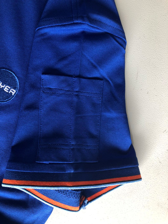 倍雅电子企业的主色是宝蓝色,公司LOGO也是宝蓝色。因此鹰诺达推荐夏季宝蓝色POLO衫得到了其公司领导的一致认可。LOGO也是蓝色的圆形LOGO,大家不要担心蓝色的LOGO在蓝色的衣服上不太明显了,只要选择稍微有点不一样的蓝色线刺绣上去之后也会有凹凸感,会非常明显的。