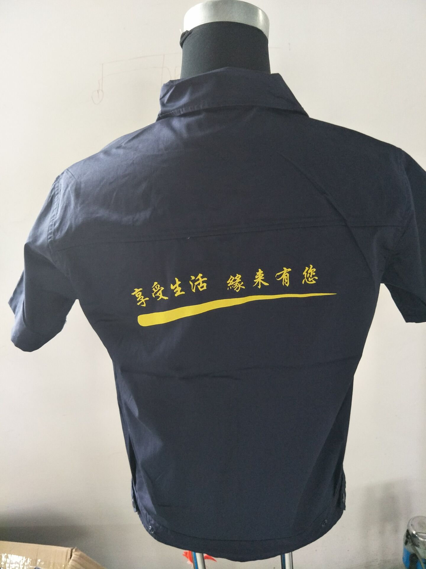 东浦购物广场的莫经理是此次工作服定制的负责人,值此超市购物广场店庆之际,莫经理想要定做超市工作服,夏季短袖的,之前没有做过,现在想要找到一个靠谱的厂家定做超市店庆工作服,想要纯色,初步看中的是鹰诺达AD070的款式的,在左胸刺绣上公司的LOGO,后背也印刷上LOGO。