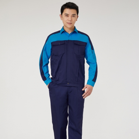 深兰拼浅蓝色工作服AC2205-1