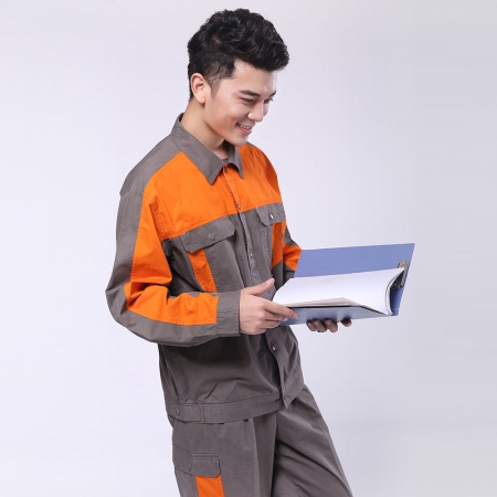 苏州鹰诺服装:灰色拼橘黄春秋工作服AC024-1-CQ