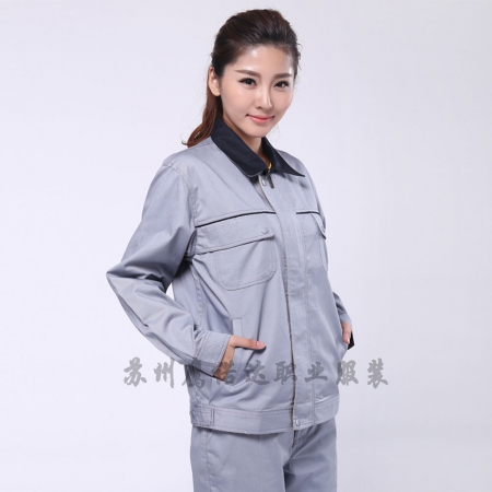 苏州鹰诺服装:浅灰配深灰涤棉纱卡建筑工作服AC071-JZ