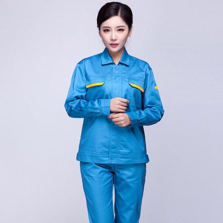 苏州鹰诺服装:新款湖蓝色拼浅灰秋季工作服AC20-2
