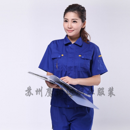 苏州鹰诺服装:深蓝配桔红工作服AD069