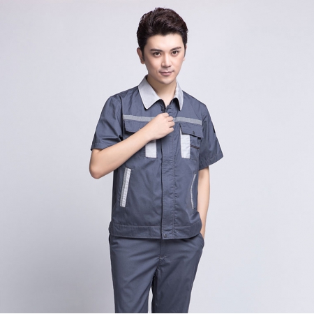 苏州鹰诺服装:灰色拼藏青夏季工作服AD089