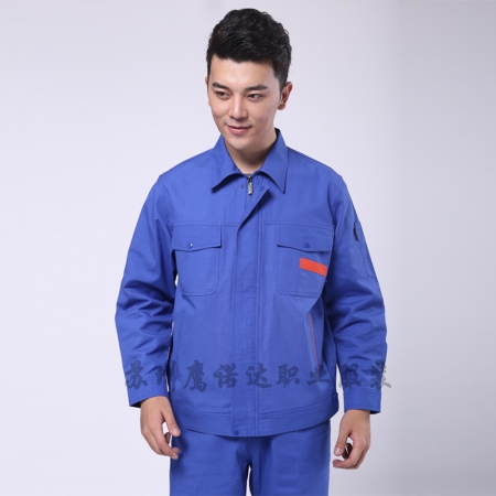 苏州鹰诺服装:深蓝配桔红工作服AD069