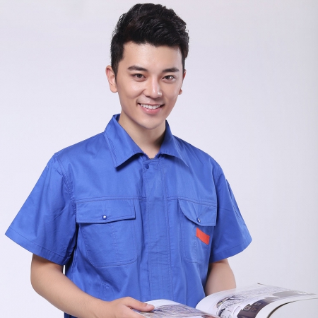 苏州鹰诺服装:深蓝配桔红工作服AD069