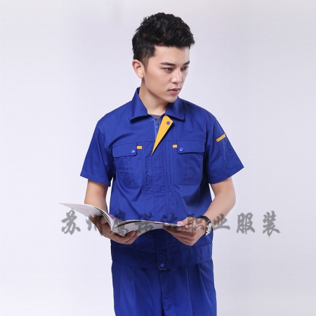 苏州鹰诺服装:深兰色短袖工作服AD04-2