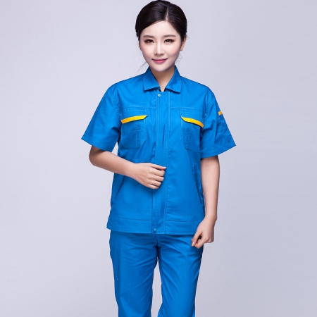 苏州鹰诺服装:深兰色短袖工作服AD04-2