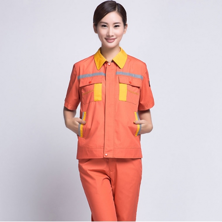 深蓝配桔红短袖工作服AD069