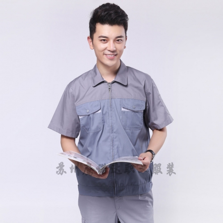 苏州鹰诺服装:浅灰拼绿色全棉工作服AC121-CQ
