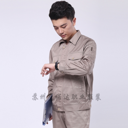 卡其拼藏青涤棉纱卡长袖工衣AC109