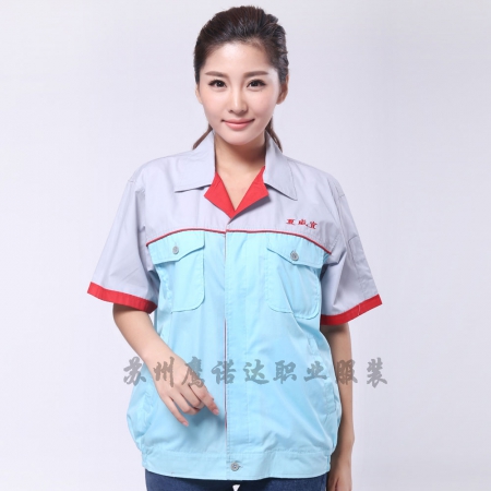 苏州鹰诺服装:湖蓝拼浅灰工作服AC20-2