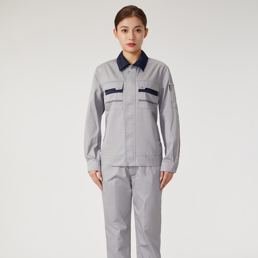 灰色拼藏青夏季工作服AD089